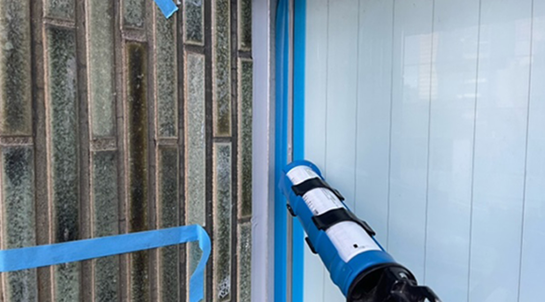 外壁材の目地をシーリング材で塞ぎ、外壁の雨漏りを防ぎます。